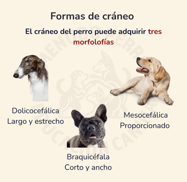Como hemos dicho al comienzo, los perros pueden adoptar muchas formas. No solo en tamaños, sino también en longitud, presencia o no de cola, forma de la cola, separación de las patas, longitud de las patas respecto al tronco, forma de cráneo (dolicocefálica, mesocefálica y braquicéfala), forma de las orejas, tipo de pelo (o incluso ausencia de éste), pigmentación de pelo, uñas y nariz…