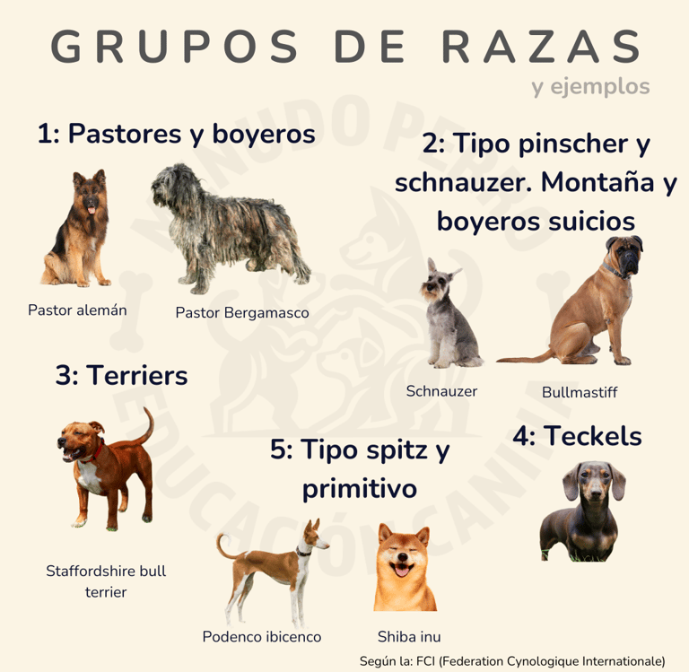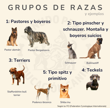 Las razas reconocidas por la FCI están agrupadas en 10 categorías: