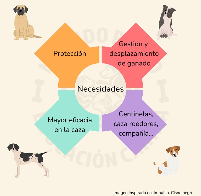 En cualquier caso, la cría selectiva de perros no es algo actual. Antiguamente la selección se debía a su uso para cubrir diferentes necesidades humanas. La pureza de su sangre no era tan importante como que fuese apto para su tarea. Podríamos hablar de cuatro necesidades principales: