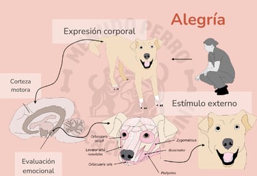 Nosotros podemos reconocer las emociones de los perros y los perros las nuestras. Los perros son capaces al menos de discriminar entre felicidad y enfado mediante la expresión facial de los humanos, según un estudio de Müller y colaboradores (2015). Es más, el estado emocional del humano interfiere en la conducta del perro. Por ejemplo, cuando el tutor esta triste sus compañeros tienden a estar más cerca de él que cuando está alegre o neutro. Además, cuando los tutores están alegres sus compañeros perrunos aprenden mejor una tarea (Bräuer y cols. 2024).
