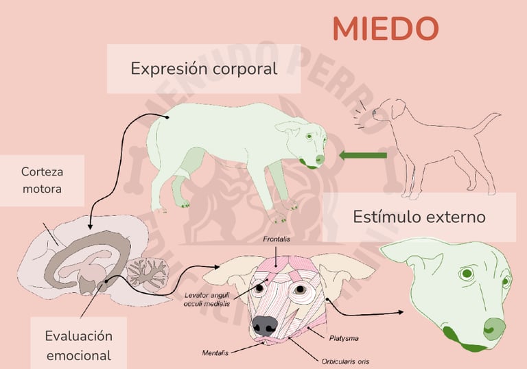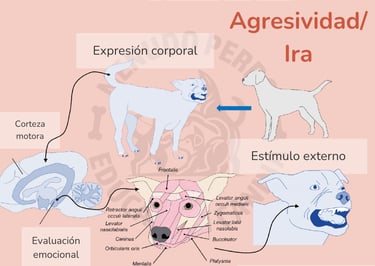 Retomando el discurso anterior, las emociones primarias tienen una expresión facial universal. Los humanos tendemos a centrar nuestras miradas en la cara cuando estamos interactuando con otro individuo para obtener información del contexto y completar la comunicación. Con los perros nos pasa igual, sin embargo, para poder interpretar correctamente el estado emocional de estos hay que mirar el cuerpo completo.